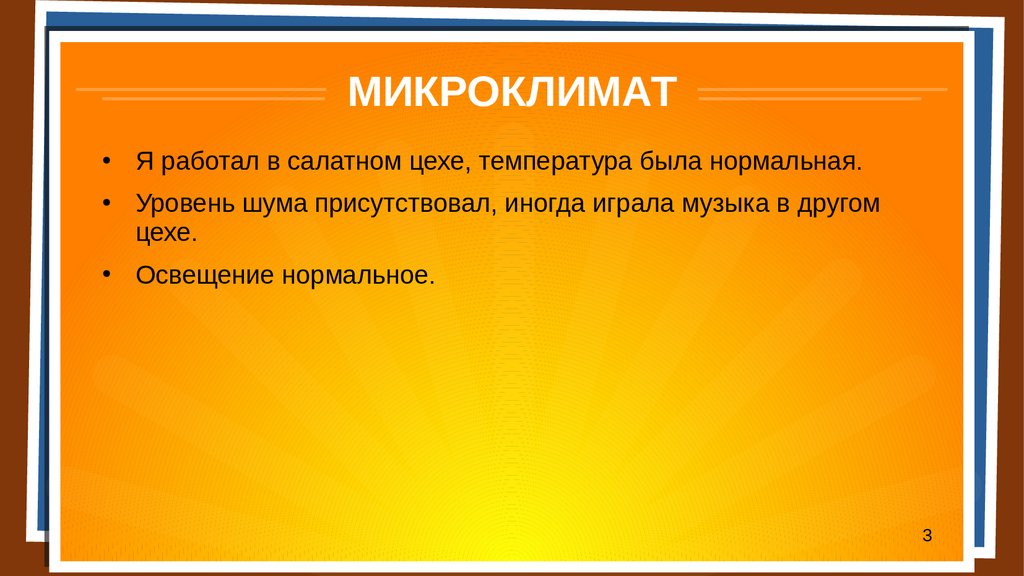 МИКРОКЛИМАТЯ работал в салатном цехе, температура была нормальная.