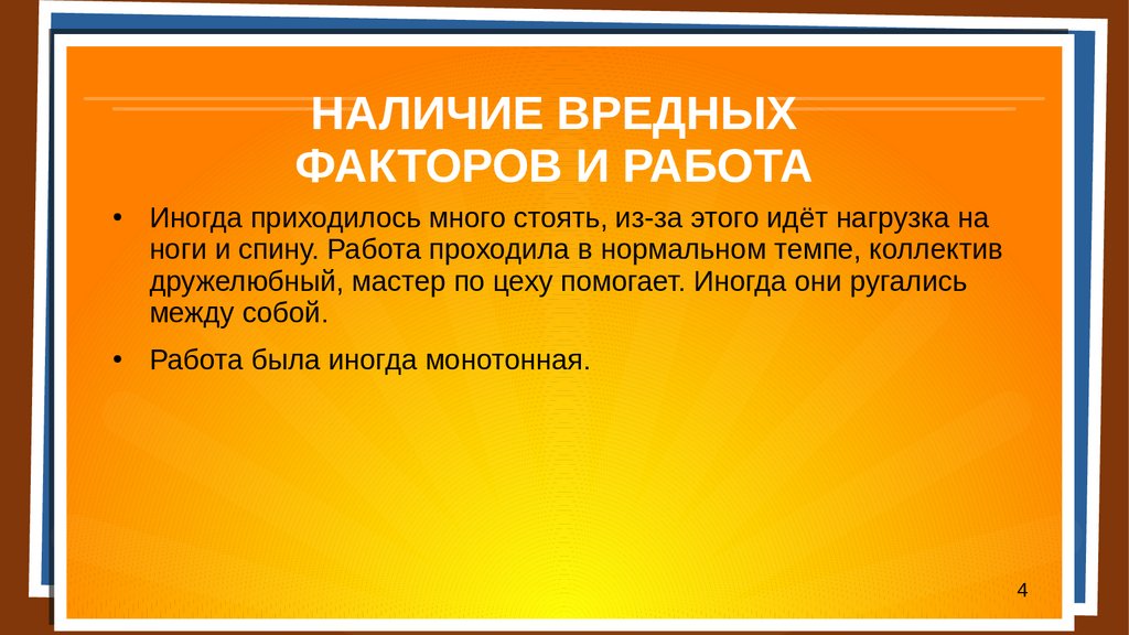 НАЛИЧИЕ ВРЕДНЫХФАКТОРОВ И РАБОТА