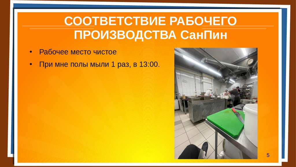 СООТВЕТСТВИЕ РАБОЧЕГОПРОИЗВОДСТВА СанПин