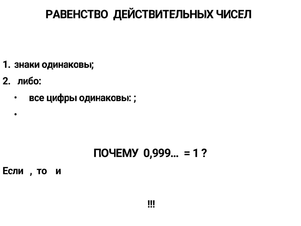 РАВЕНСТВО ДЕЙСТВИТЕЛЬНЫХ ЧИСЕЛ1. знаки одинаковы;