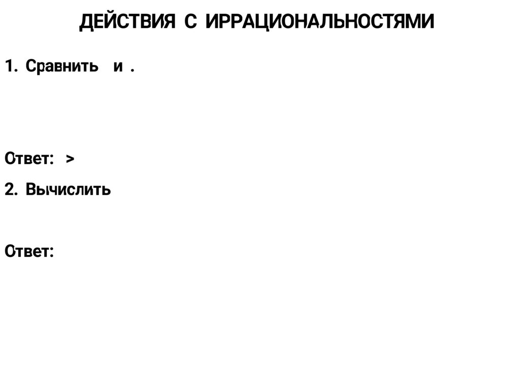 ДЕЙСТВИЯ С ИРРАЦИОНАЛЬНОСТЯМИ1. Сравнить и .