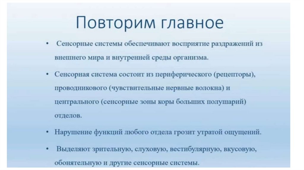 Сенсорные систем. Общие принципы функционирования анализаторов