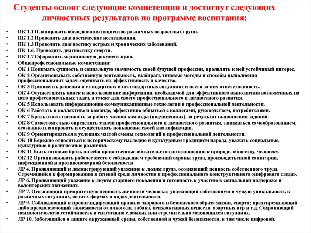 Студенты освоят следующие компетенции и достигнут следующихличностных результатов по программе воспитания: