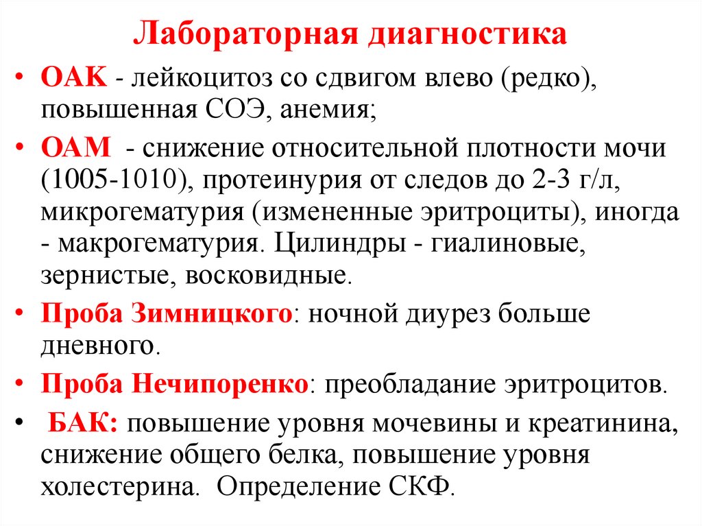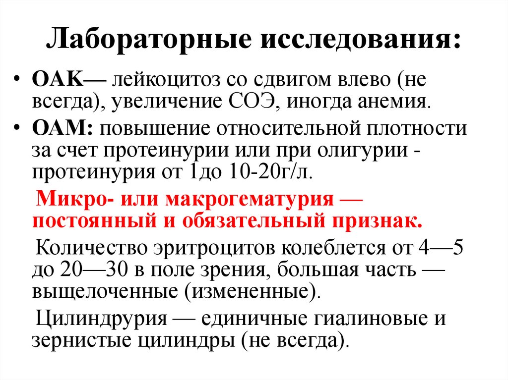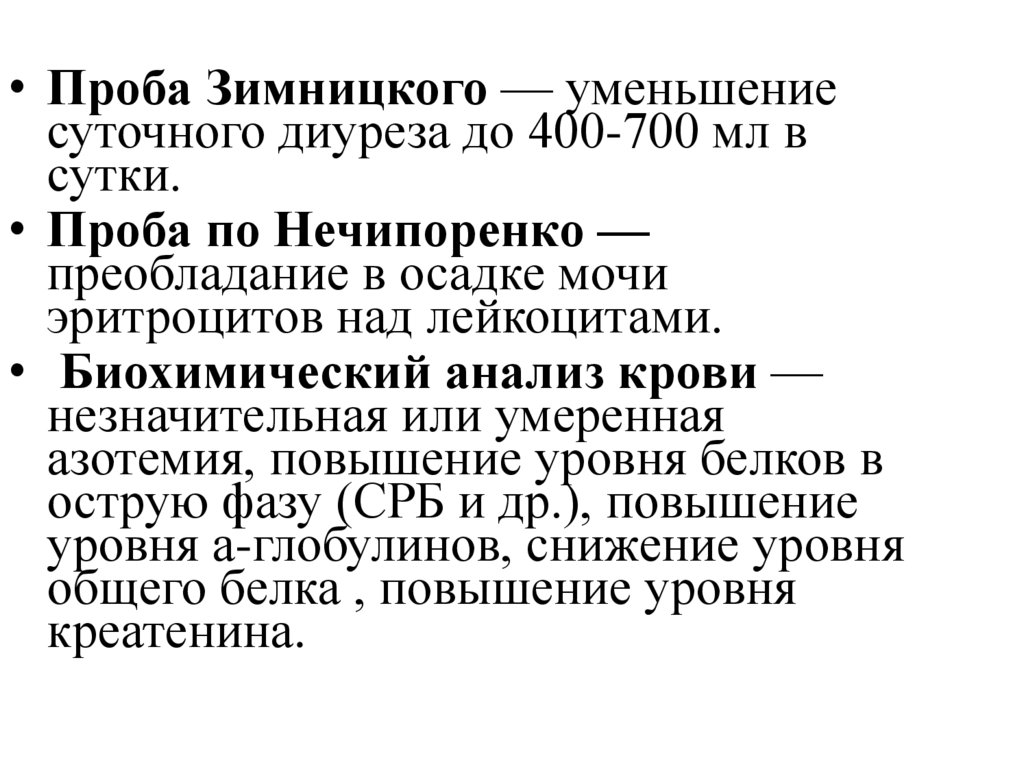 (1005-1010), протеинурия от следов до 2-3 г/л,