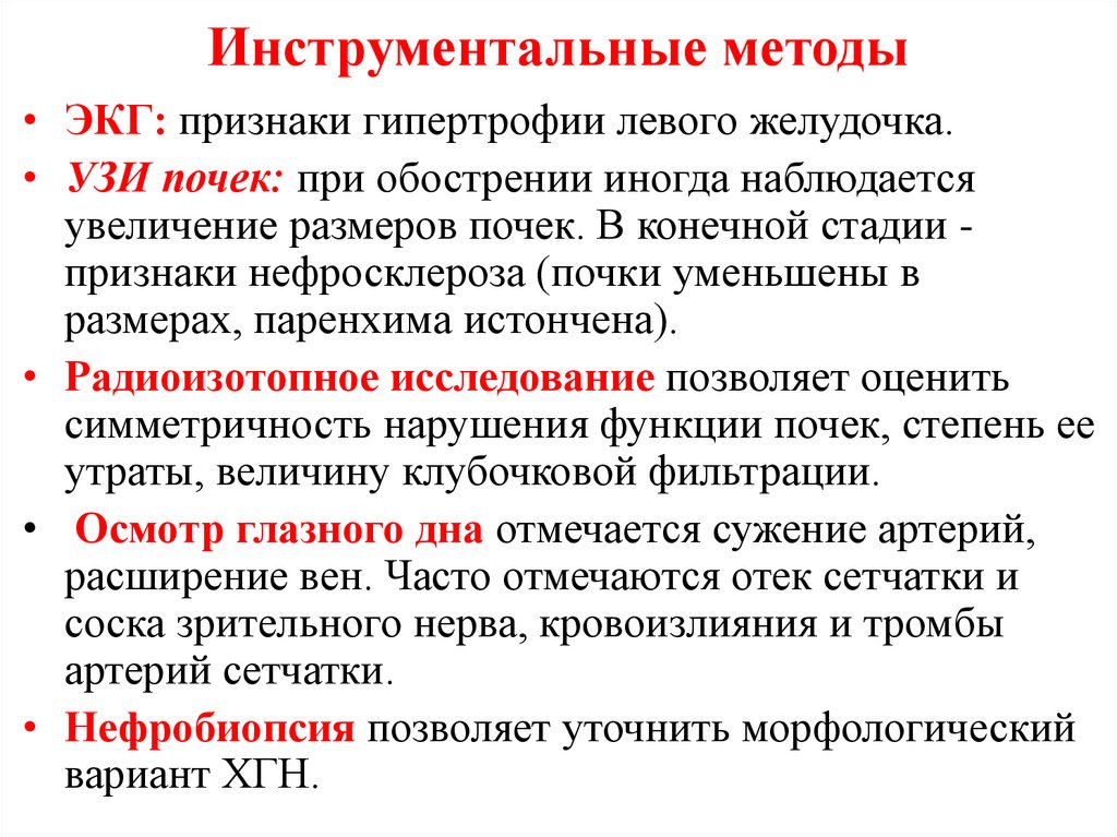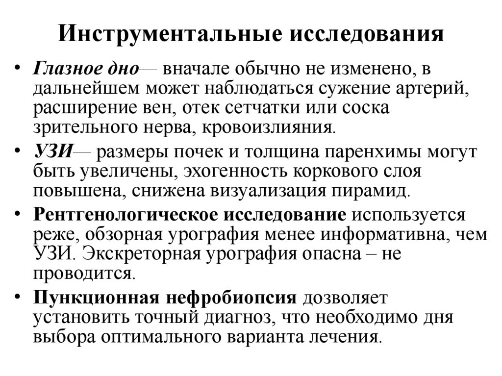 увеличение размеров почек. В конечной стадии признаки нефросклероза (почки уменьшены в
