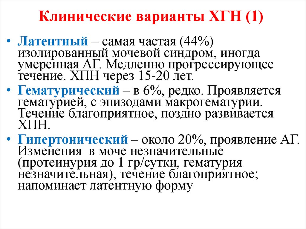 Клинические варианты ХГН (1)• Латентный – самая частая (44%)