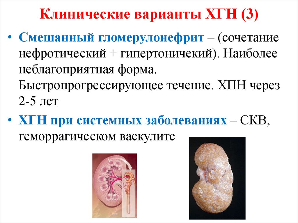 Клинические варианты ХГН (3)• Смешанный гломерулонефрит – (сочетание