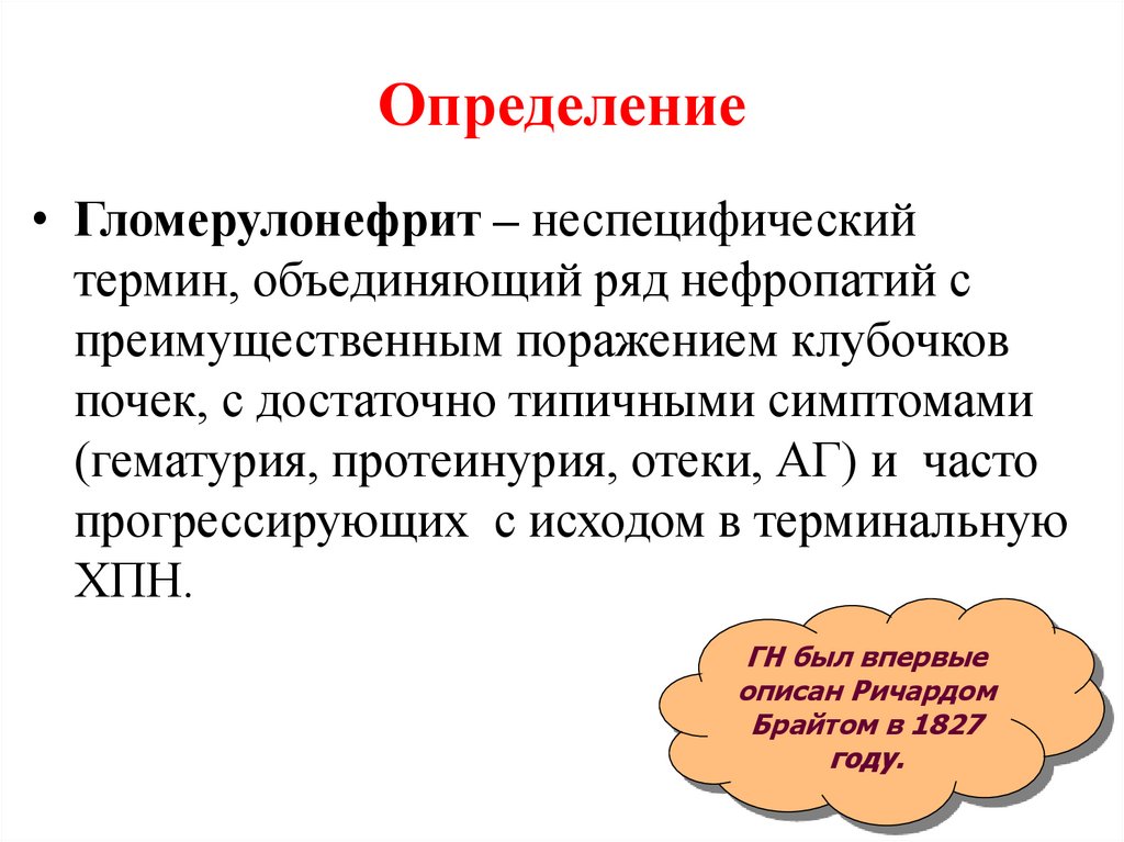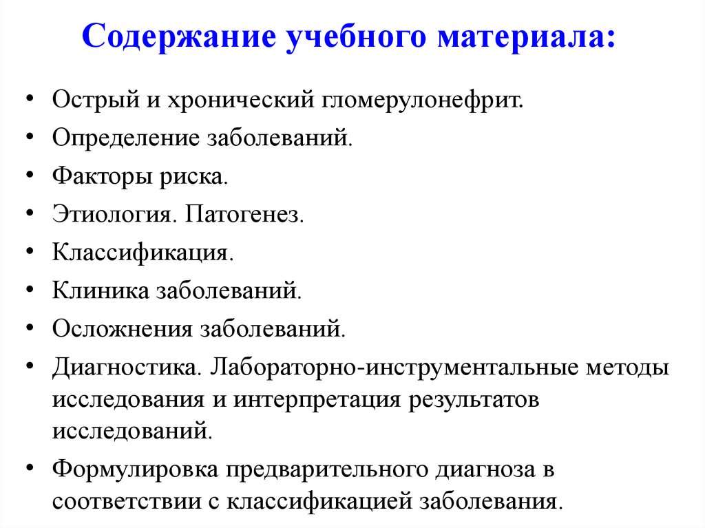 Содержание учебного материала:• Острый и хронический гломерулонефрит.