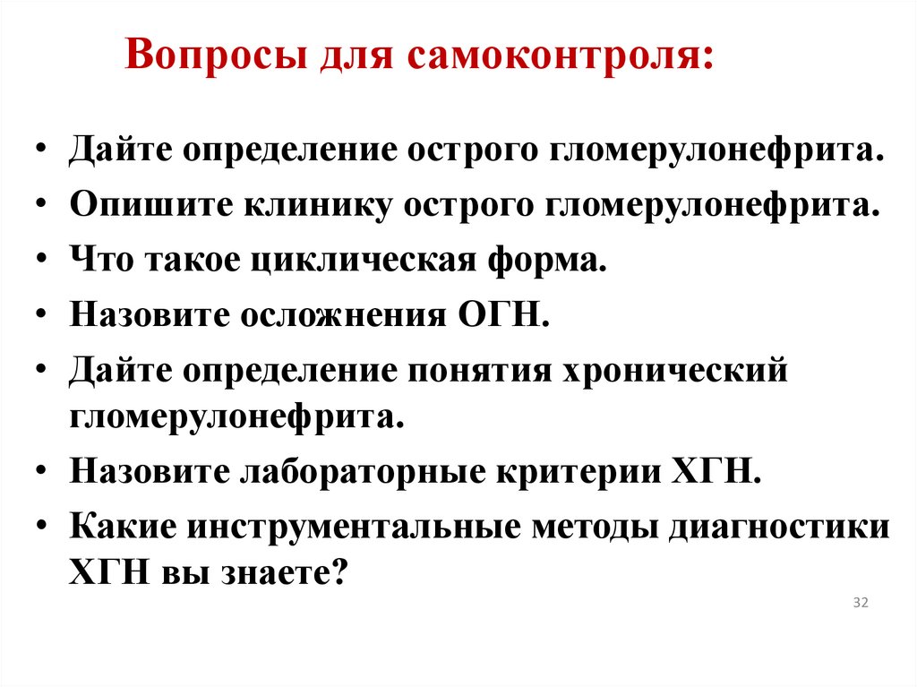 Вопросы для самоконтроля:• Дайте определение острого гломерулонефрита.