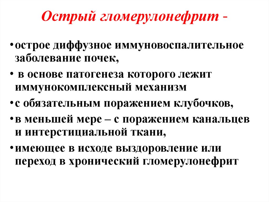 Острый гломерулонефрит •острое диффузное иммуновоспалительноезаболевание почек,