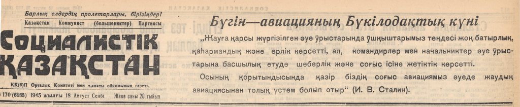 Социалистік казакстан. Бугін—авиациянын, Букілодактык, куні
