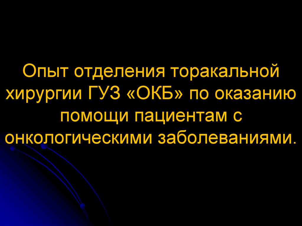 Опыт отделения торакальнойхирургии ГУЗ «ОКБ» по оказанию