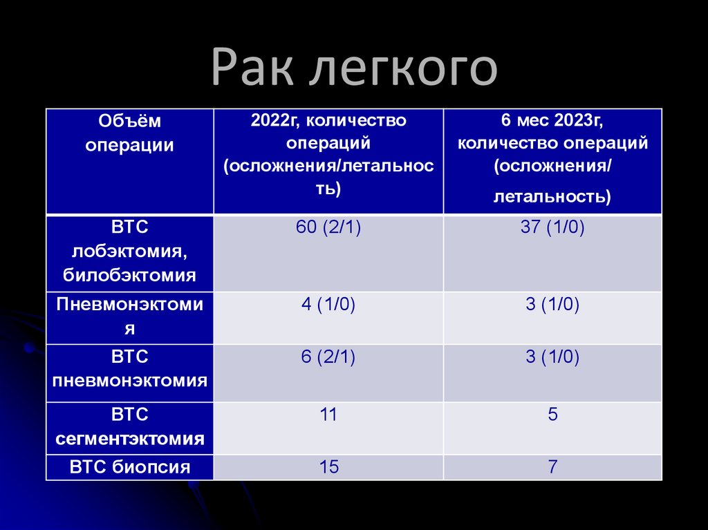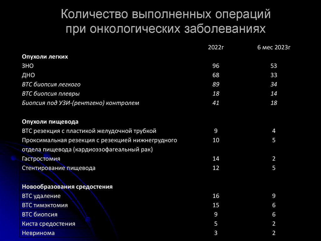 Опыт отделения торакальной хирургии ГУЗ «ОКБ» по оказанию помощи пациентам с онкологическими заболеваниями