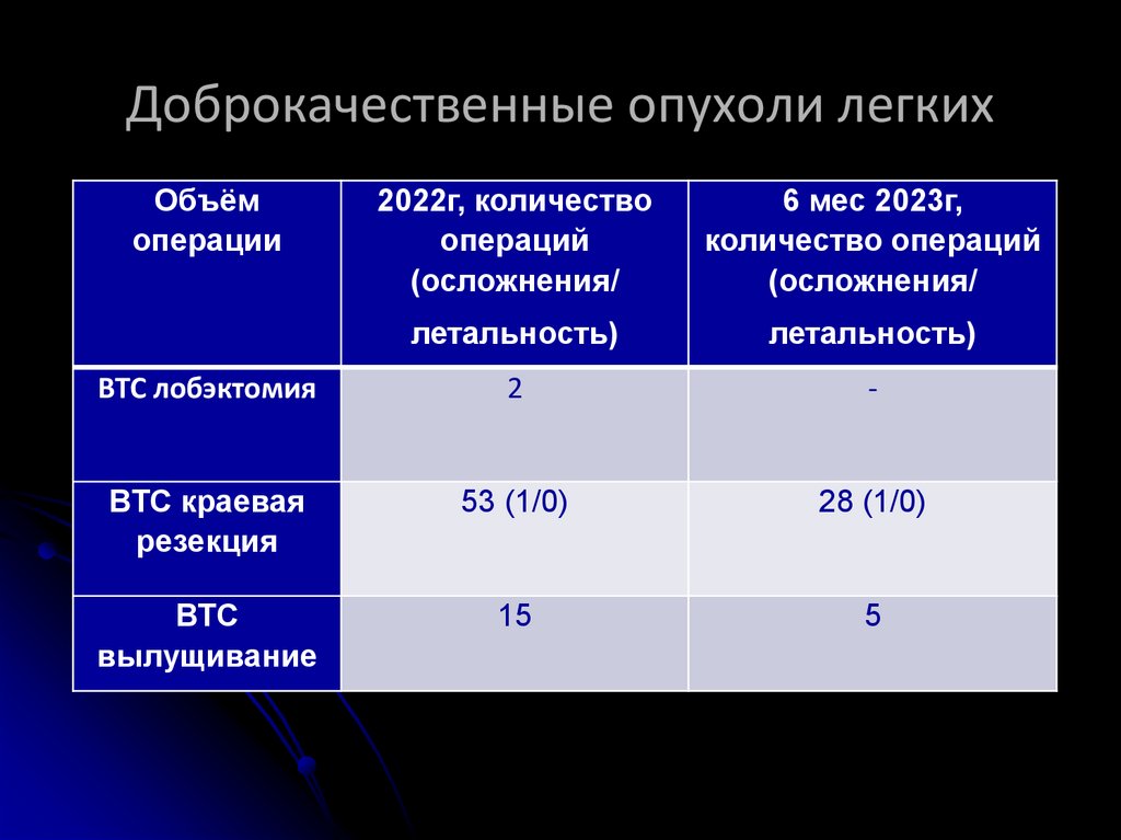 Доброкачественные опухоли легкихОбъём