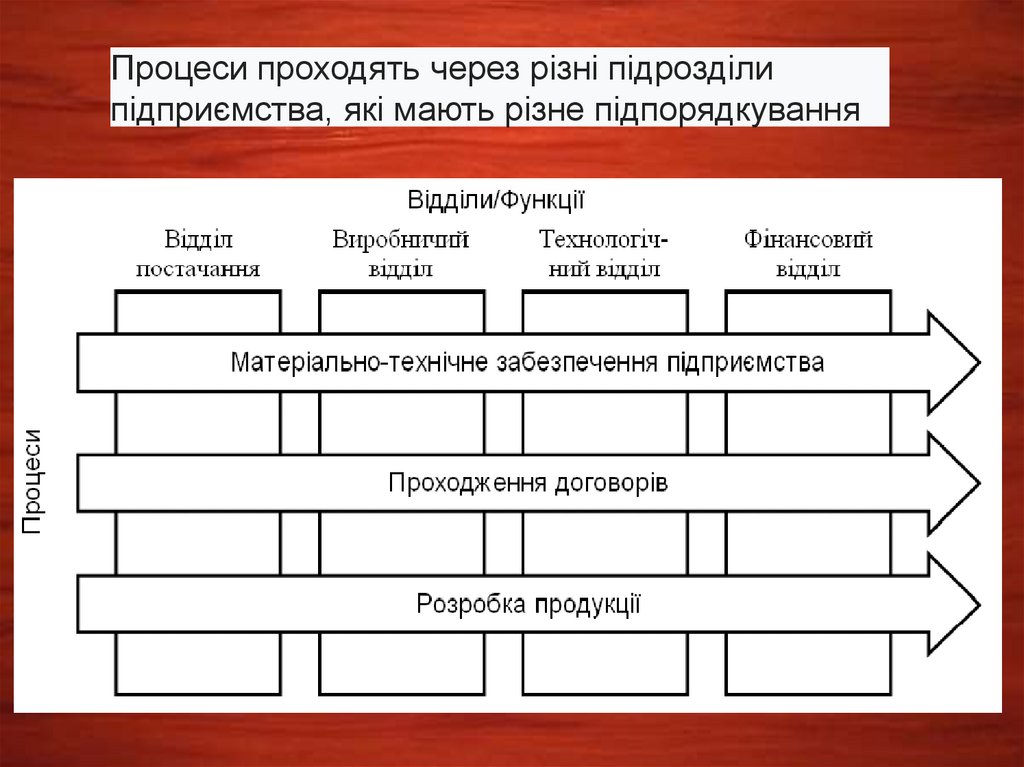 Процеси проходять через різні підрозділипідприємства, які мають різне підпорядкування