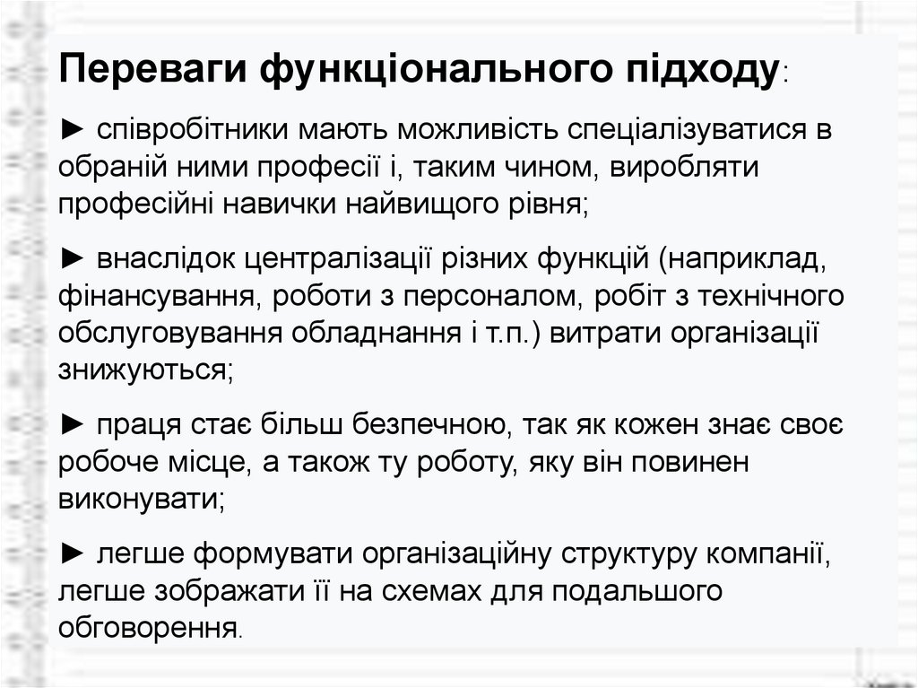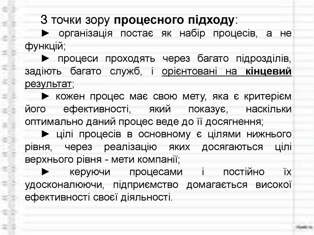 З точки зору процесного підходу:► організація постає як набір процесів, а не