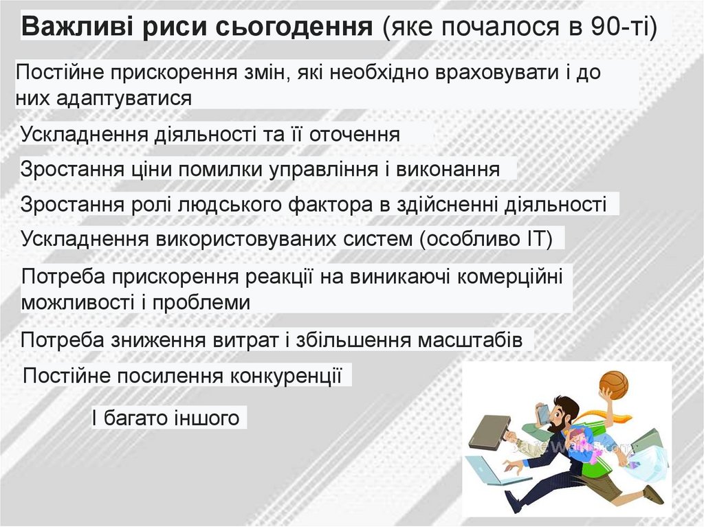 Важливі риси сьогодення (яке почалося в 90-ті)Постійне прискорення змін, які необхідно враховувати і до