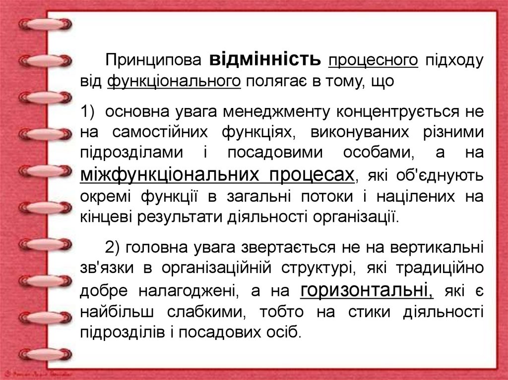 Принципова відмінність процесного підходувід функціонального полягає в тому, що