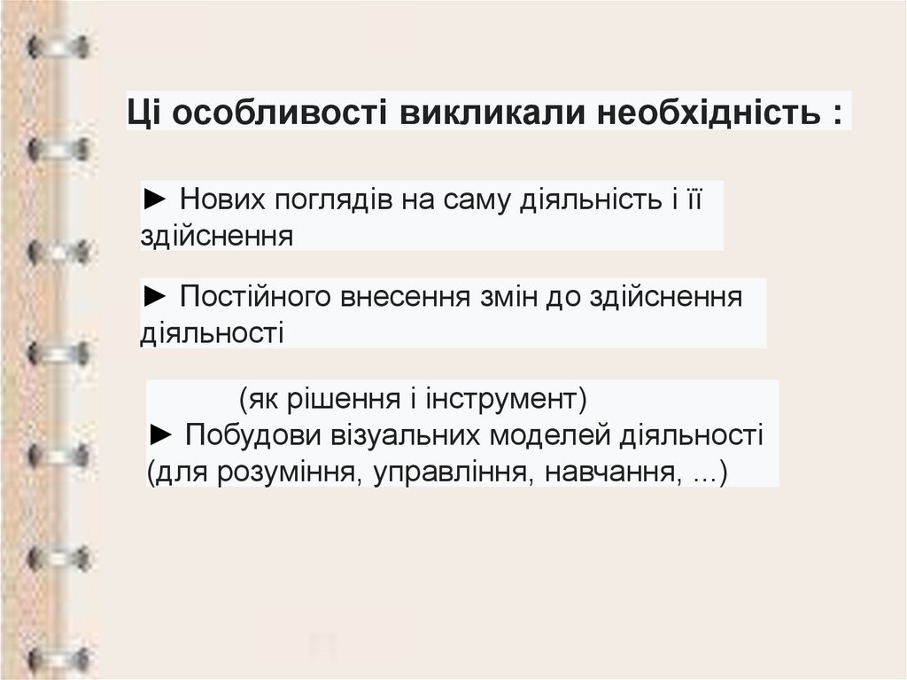 Ці особливості викликали необхідність :► Нових поглядів на саму діяльність і її