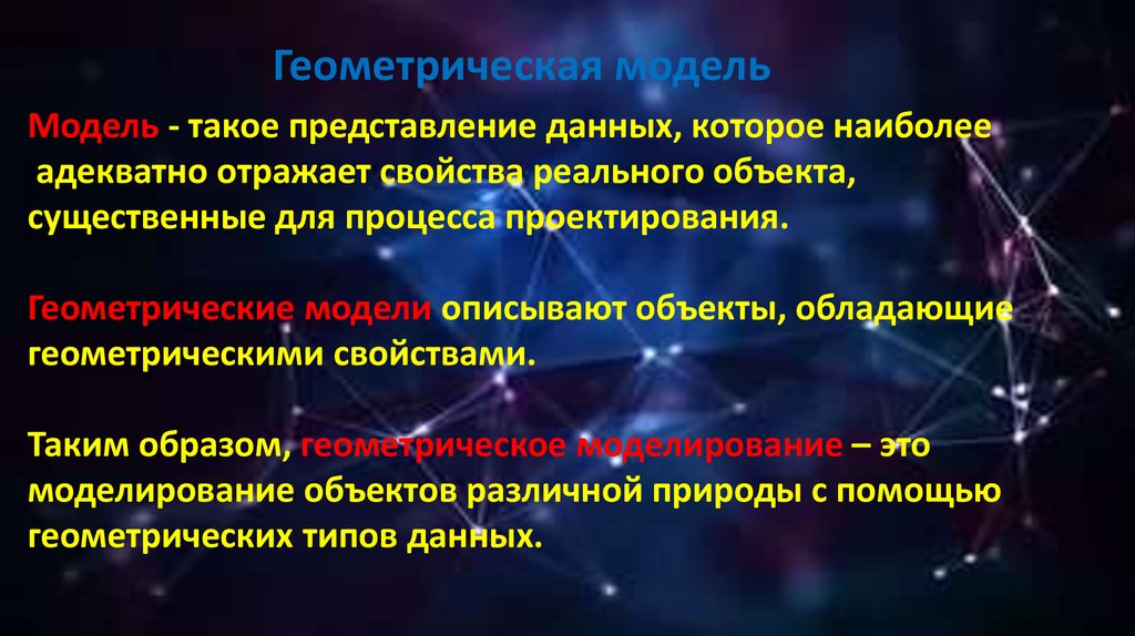 Геометрическая модельМодель - такое представление данных, которое наиболее