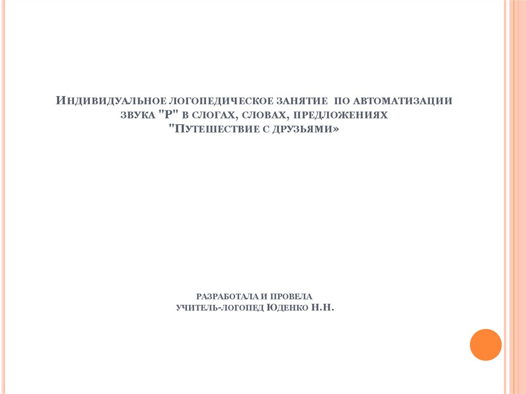 ИНДИВИДУАЛЬНОЕ ЛОГОПЕДИЧЕСКОЕ ЗАНЯТИЕ ПО АВТОМАТИЗАЦИИЗВУКА "Р" В СЛОГАХ, СЛОВАХ, ПРЕДЛОЖЕНИЯХ