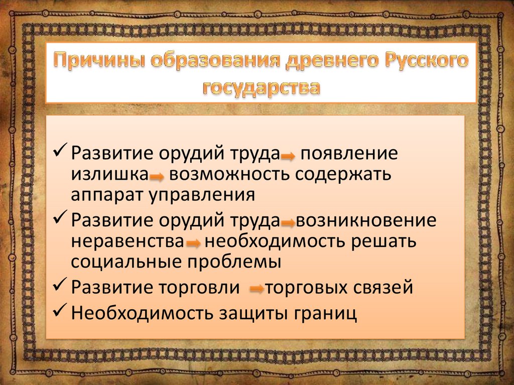 Развитие орудий труда появлениеизлишка возможность содержать