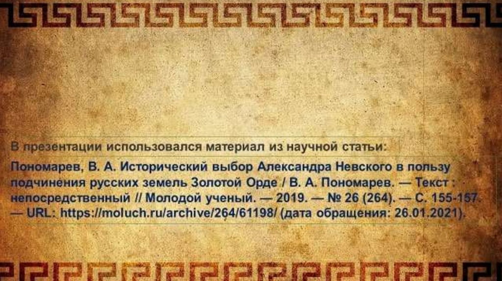 Исторический выбор Александра Невского в пользу подчинения русских земель Золотой Орде