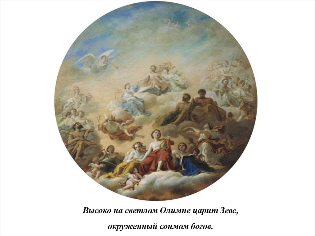 Высоко на светлом Олимпе царит Зевс,окруженный сонмом богов.