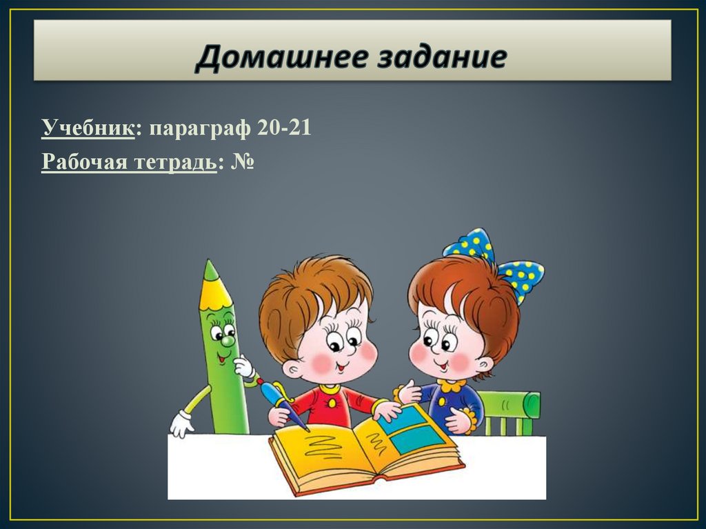 Учебник: параграф 20-21Рабочая тетрадь: №