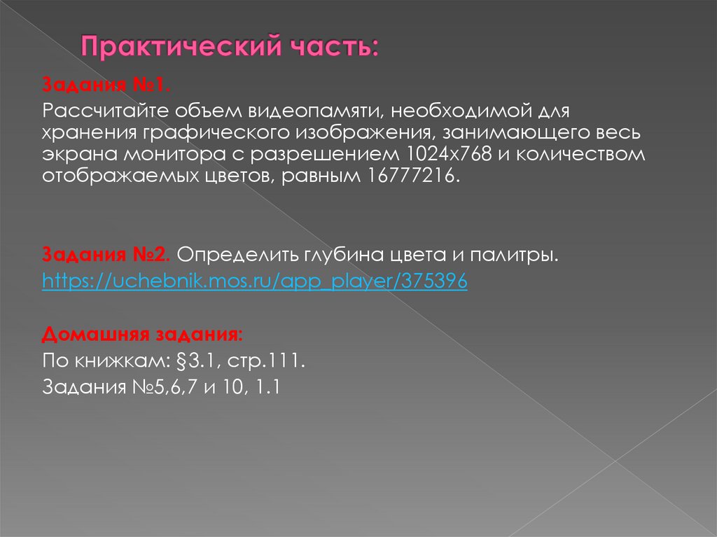 Задания №1.Рассчитайте объем видеопамяти, необходимой для