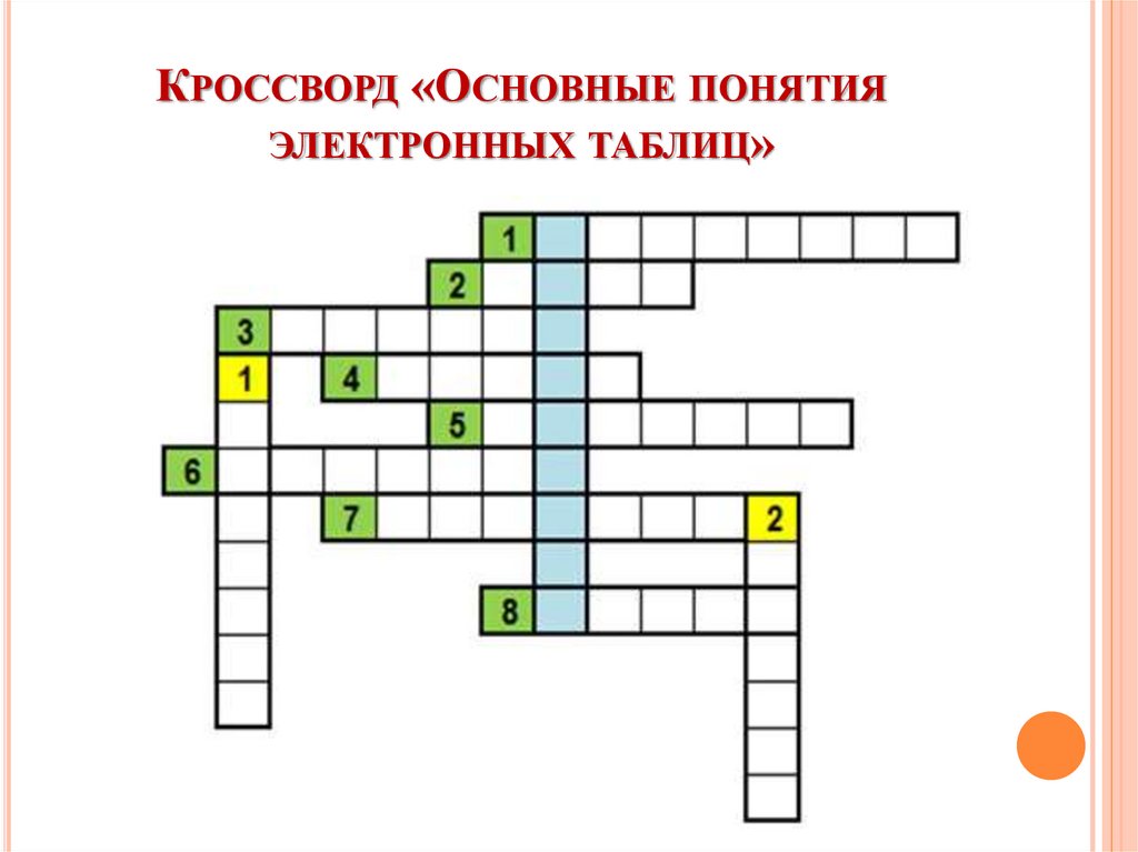 КРОССВОРД «ОСНОВНЫЕ ПОНЯТИЯЭЛЕКТРОННЫХ ТАБЛИЦ»