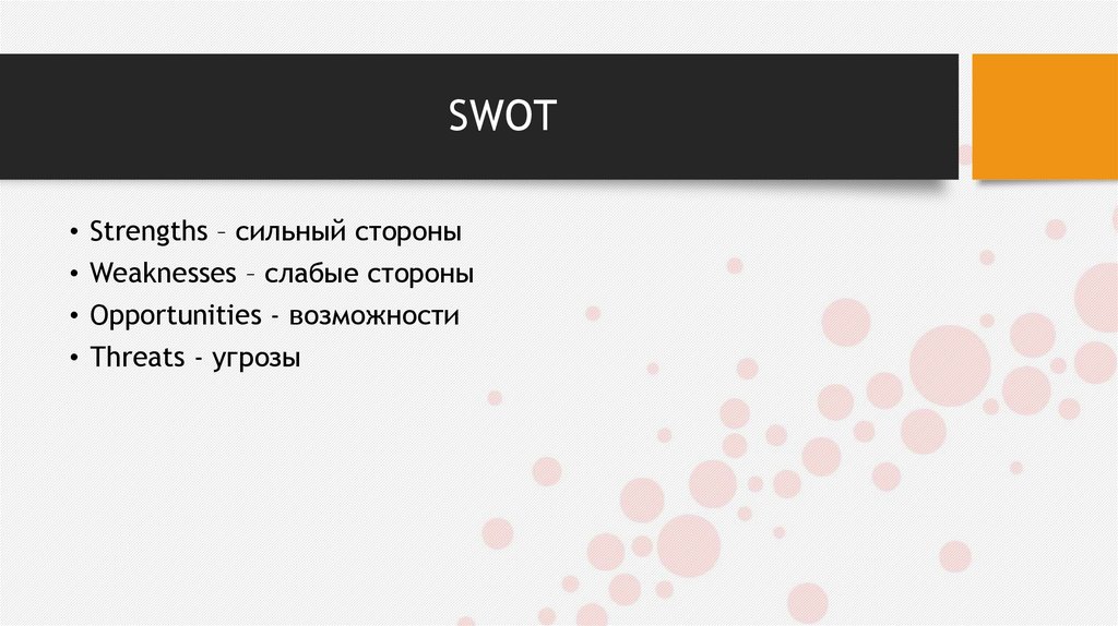 Этапы SWOT-анализа1. Определение существенных внешних и внутренних факторов