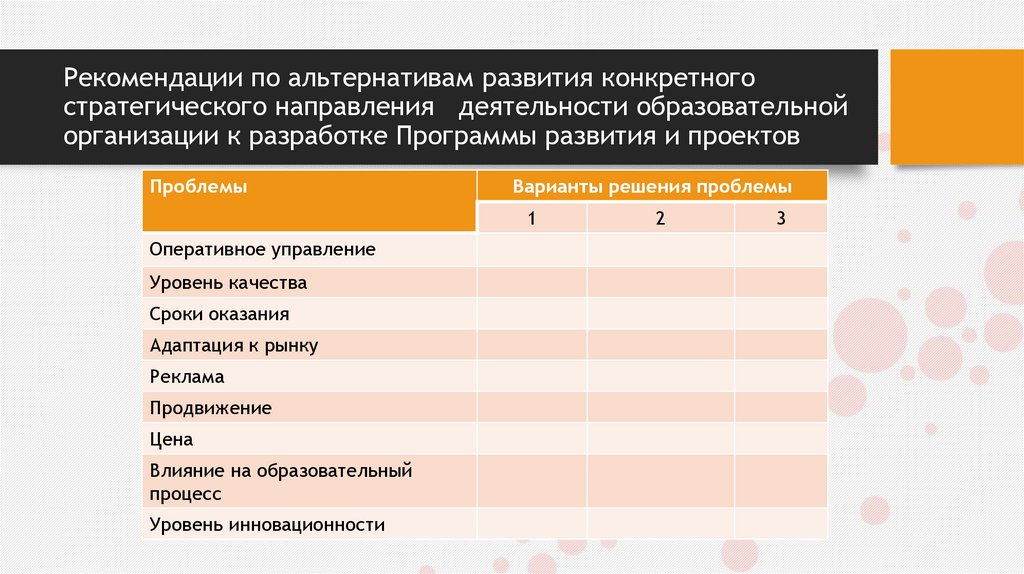 Рекомендации по альтернативам развития конкретногостратегического направления деятельности образовательной
