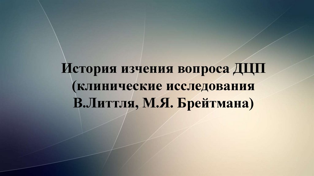 1. История изчения вопроса ДЦП (клинические исследования В.Литтля, М.Я. Брейтмана)