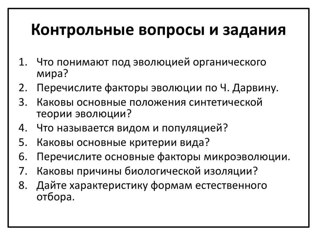 Контрольные вопросы и задания1. Что понимают под эволюцией органического