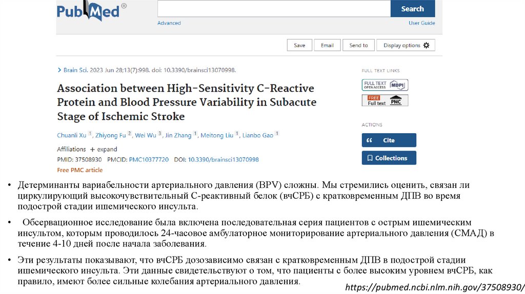 • Эти результаты показывают, что вчСРБ дозозависимо связан с кратковременным ДПВ в подострой стадии