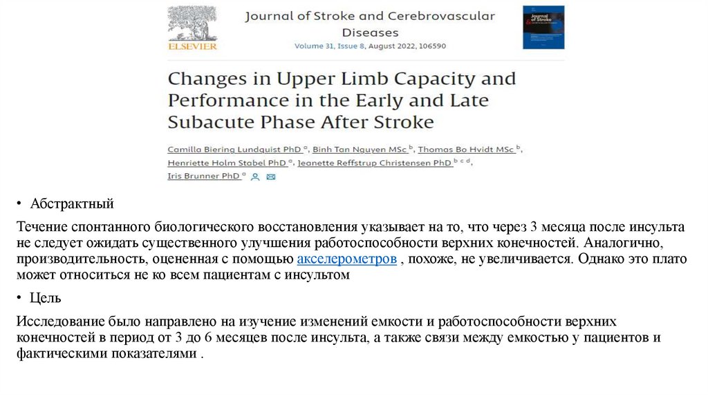 конечностей в период от 3 до 6 месяцев после инсульта, а также связи между емкостью у пациентов и