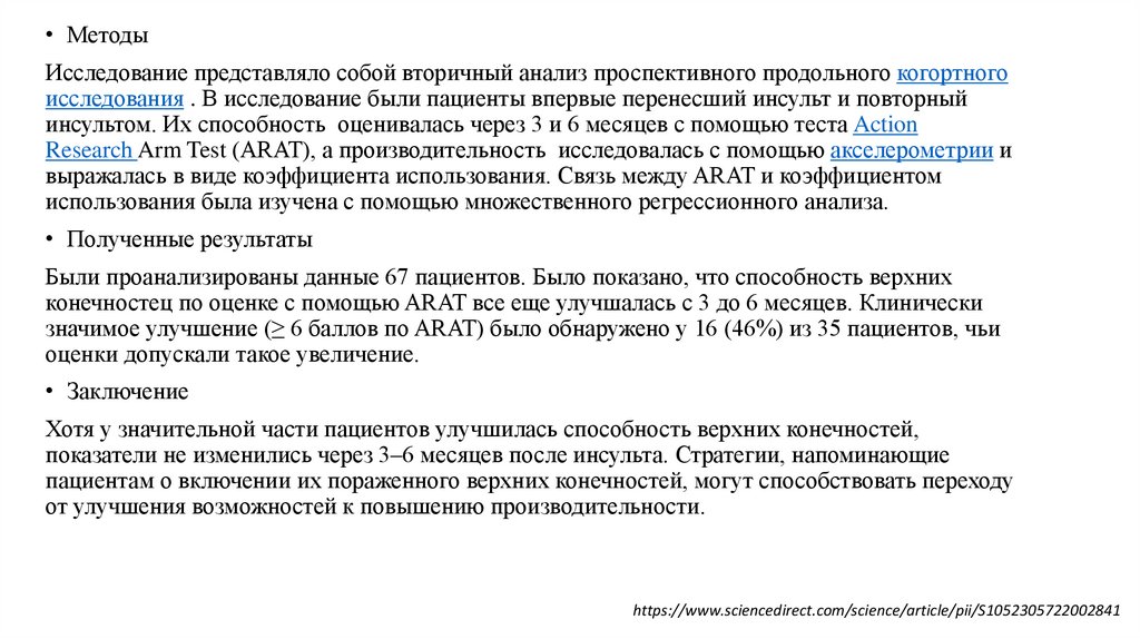 конечностец по оценке с помощью ARAT все еще улучшалась с 3 до 6 месяцев. Клинически