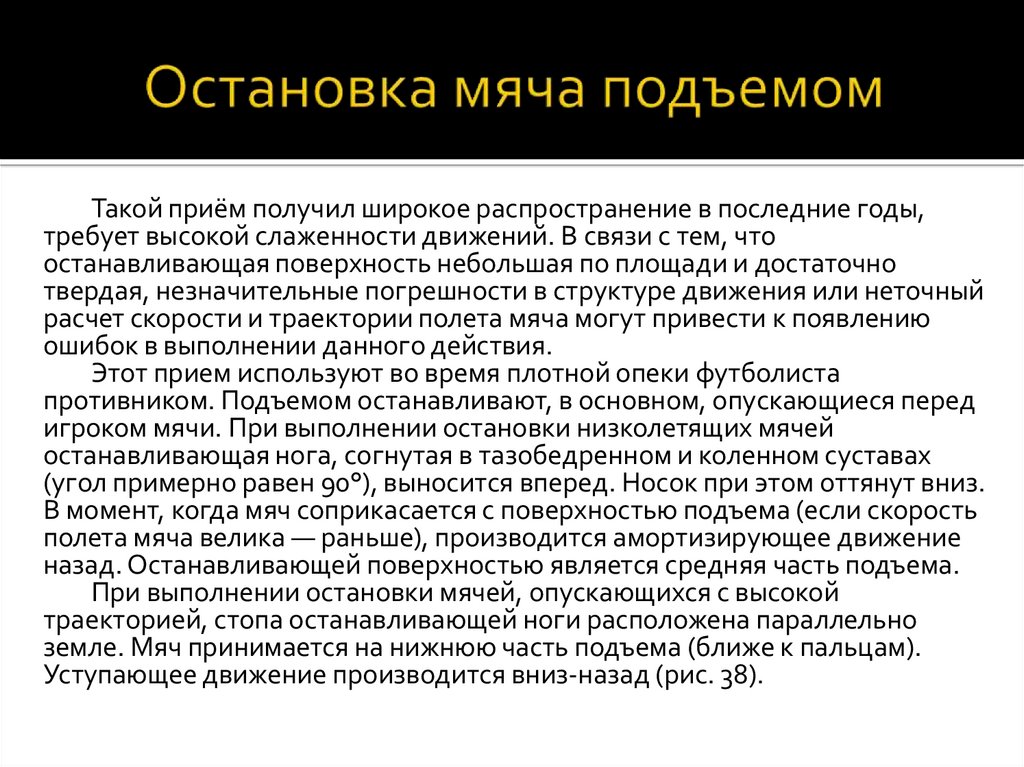 Рис. 38. Техника выполнения остановки мяча средней частью подъема.13.