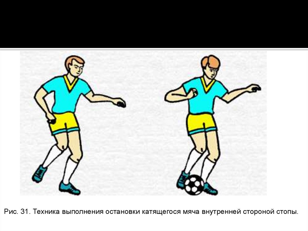 Рис. 31. Техника выполнения остановки катящегося мяча внутренней стороной стопы.4.