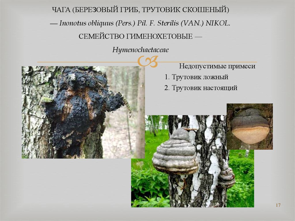 ЧАГА (БЕРЕЗОВЫЙ ГРИБ, ТРУТОВИК СКОШЕНЫЙ)— Inonotus obliquus (Pers.) Pil. F. Sterilis (VAN.) NIKOL.