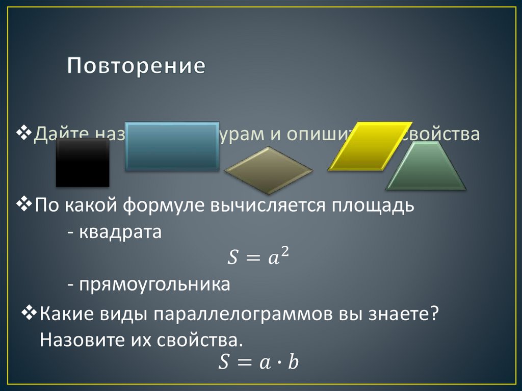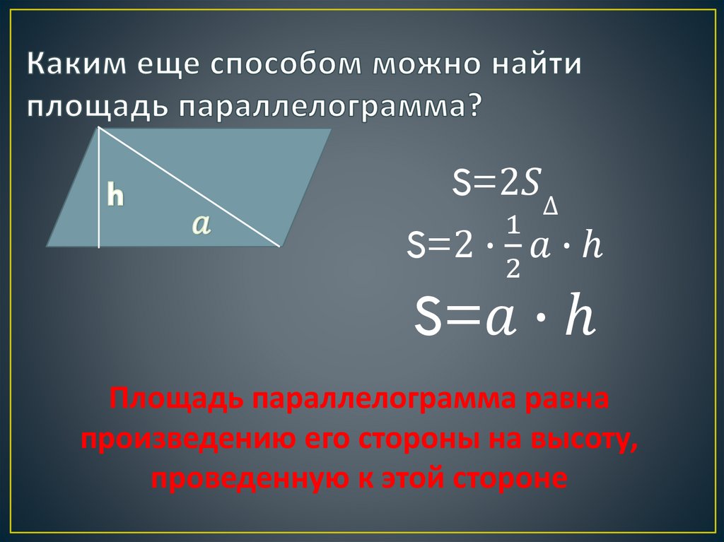 Площадь параллелограмма. Формула площади параллелограмма