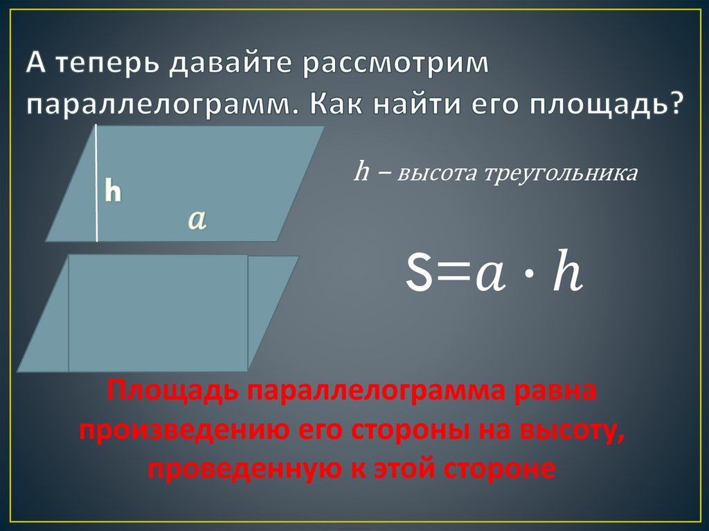 Площадь параллелограмма. Вывод формулы площади параллелограмма