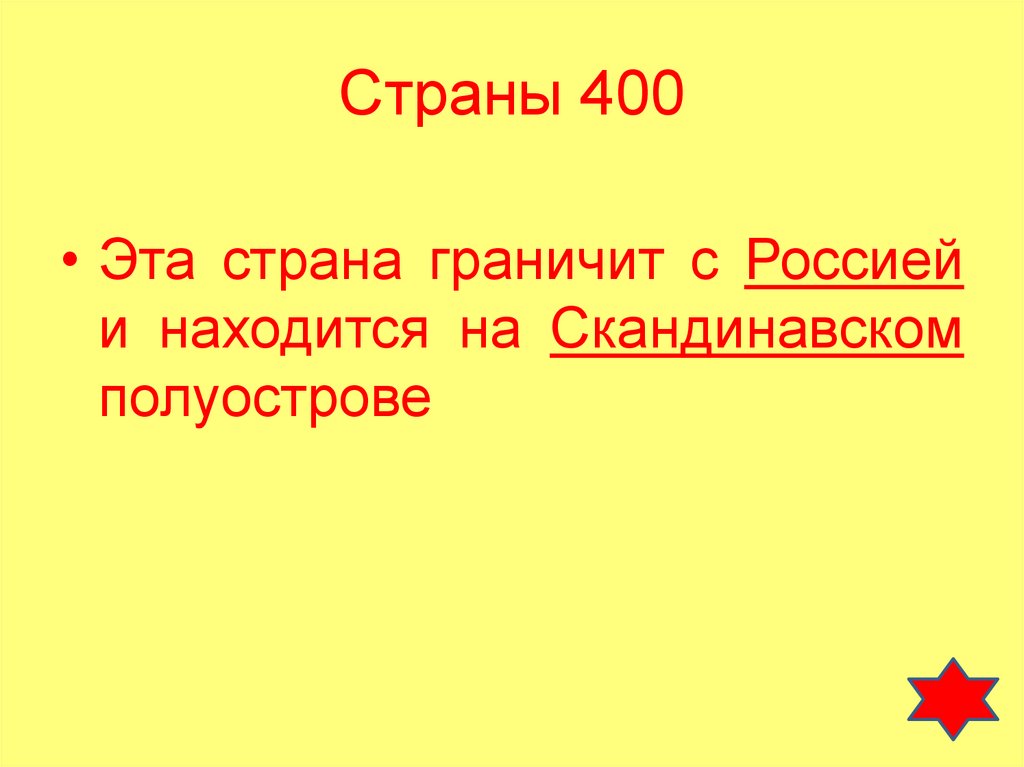 Страны 400• Эта страна граничит с Россией