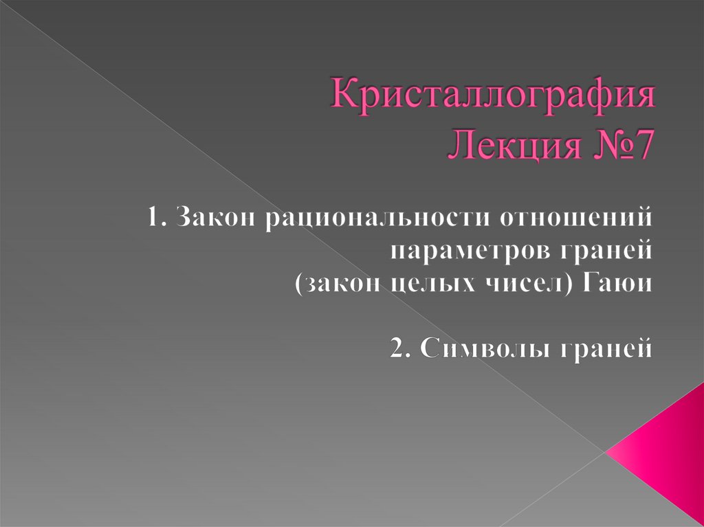 Закон рациональности отношений параметров граней (закон целых чисел). Лекция 7