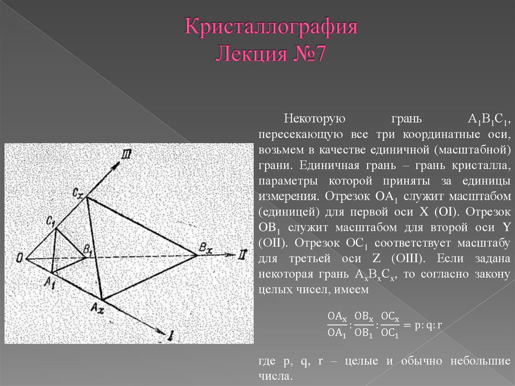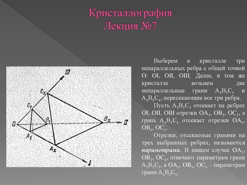 Пусть грань АxВxСx параллельна первой кристаллографической оси. Тем самым ее
