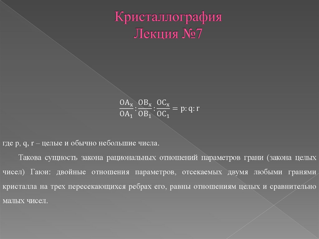 кристалла на трех пересекающихся ребрах его, равны отношениям целых и сравнительно
