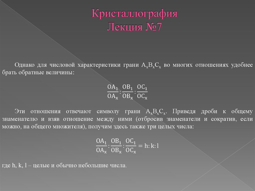 Однако для числовой характеристики грани АxВxСx во многих отношениях удобнеебрать обратные величины: