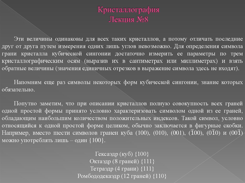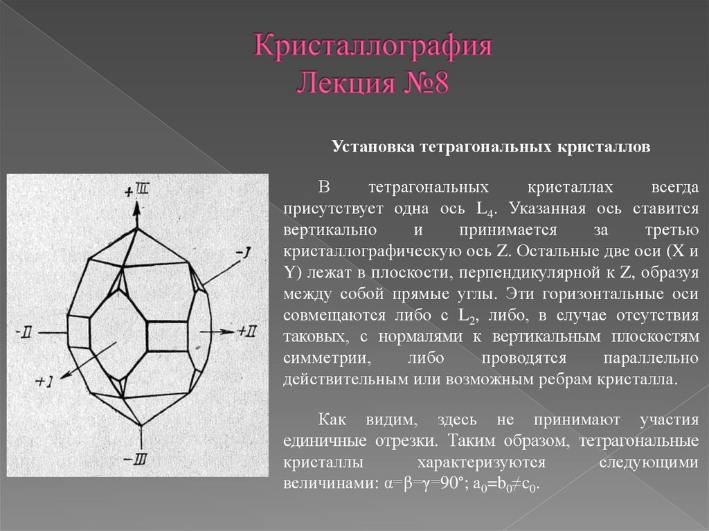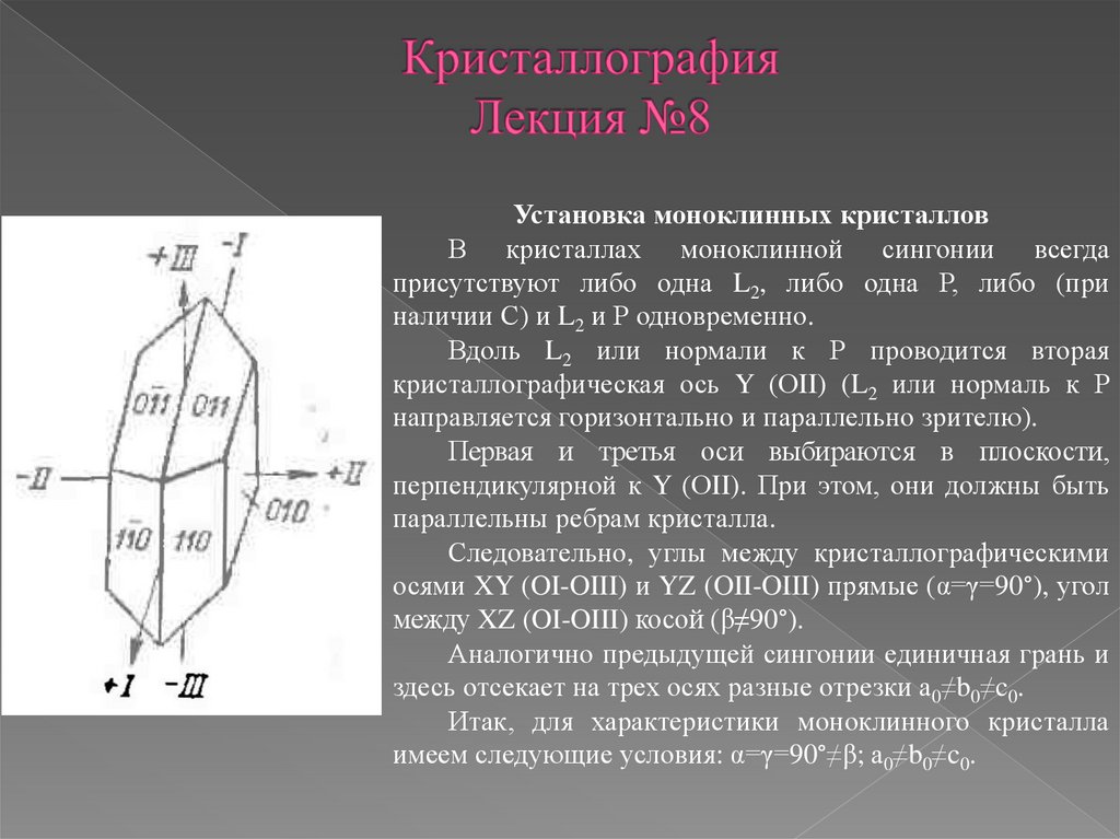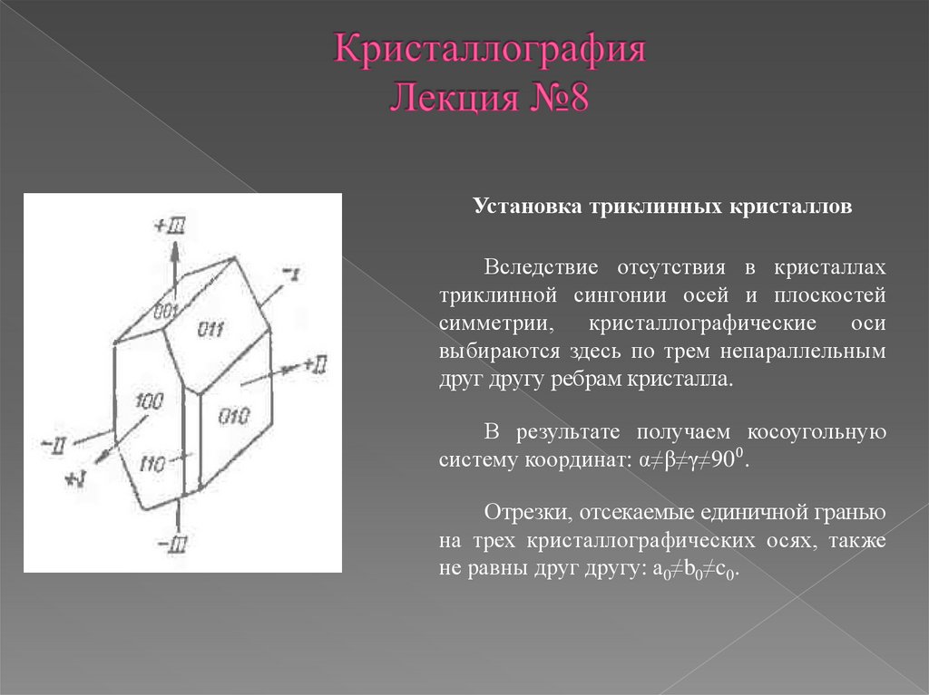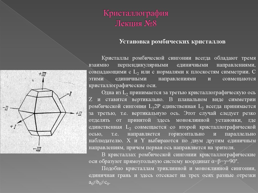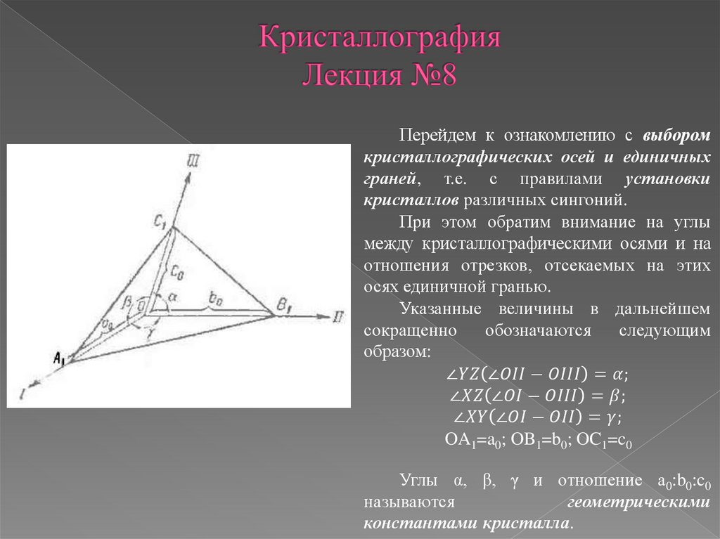 Перейдем к ознакомлению с выборомкристаллографических осей и единичных