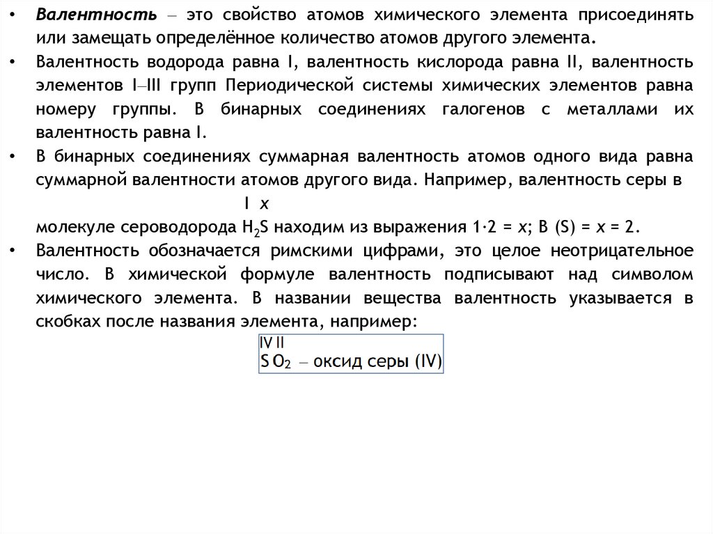 суммарной валентности атомов другого вида. Например, валентность серы в
